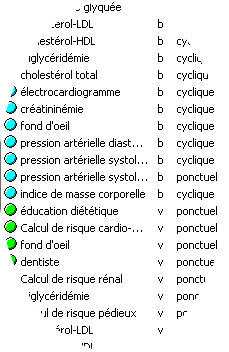 Les cibles apparaissent au sein des préoccupations concernées sous forme d'une fine ligne centrale de couleur bleu/vert/jaune/rouge (si au moins une cible est « rouge » dans un intervalle de temps, c'est à dire dangereusement loin de l'objectif car un acte n'a pas été réalisé depuis trop longtemps ou parce qu'une valeur mesurée est très anormale, alors la ligne est rouge sur cet intervalle).